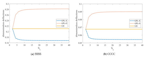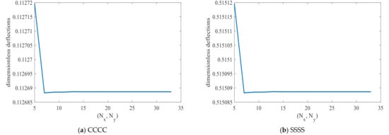 Convergence study of the bending deflection, when assuming a GPL-UD, and : (a) CCCC boundary conditions, (b) SSSS boundary conditions.