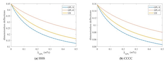 where and . Moreover, the thermal conductivity coefficients related to the GPLs distribution pattern are determined as: