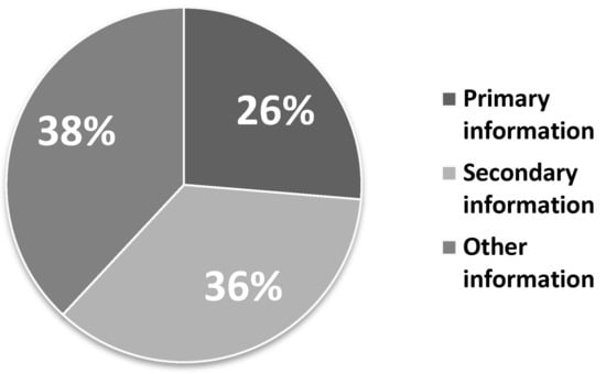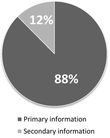Among all 1503 tweets, the primary information was represented by 88% (1317) of the tweets, and the secondary information by merely 12% (186) of the tweets (see Figure 2)