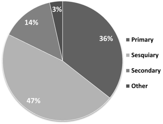 Next, we categorized the previously used election tweets according to the redefined rules. The data contained 30% of primary information (449 tweets), 57% of sesquiary information (849 tweets), and 13% of secondary information (194 tweets). See Figure 6 for details.