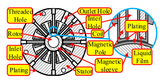 In the actual operation process, electromagnetic system failure [5,6] will be caused by electromagnetic coil corrosion and power amplifier circuit fault, which will lead to the phenomenon of “dropping-collision” between rotor and stator. The excessive wear, cracking, and shedding of magnetic sleeve and stator plating can be triggered, and the operational stability and reliability will be reduced.