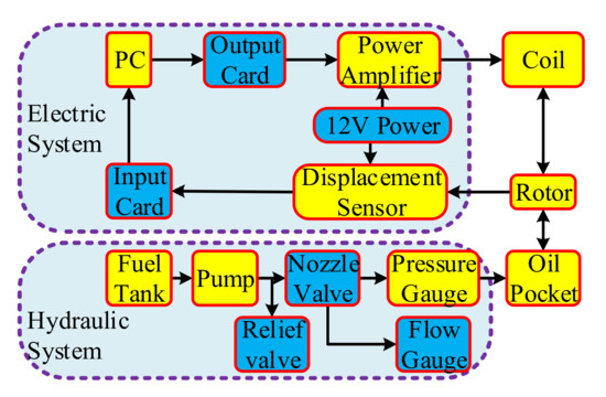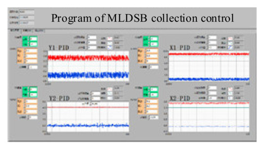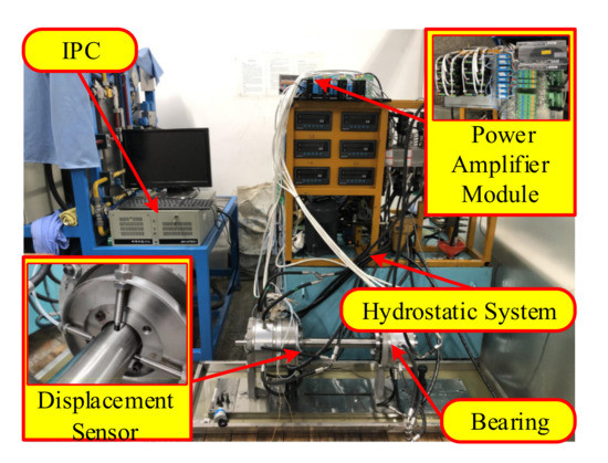 The MLDSB test stand is composed of the main body of the bearing, the electronic control system, the static pressure system, the displacement sensor, and IPC, as shown in Figure 17.
