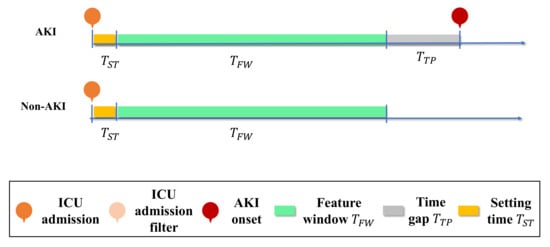 Figure 2 illustrates the AKI prediction task, with a sequential EHRs problem set-up, using a feature window of 24 h versus 48 h with a time gap of 24 h. Non-AKI patients with a feature window of 24 h were randomly selected [17]. Table 1 shows the symbols used in this study.
