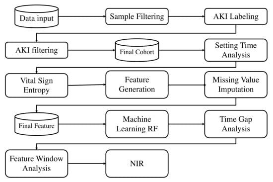 - Step 3: We conducted missing value imputation on V. Both Steps 1 and 2 are critical for the data quality, as it is not measured on a frequent and consistent basis; yet, vital signs are crucial for AKI evaluation and indication. An overall workflow is shown in Figure 3.