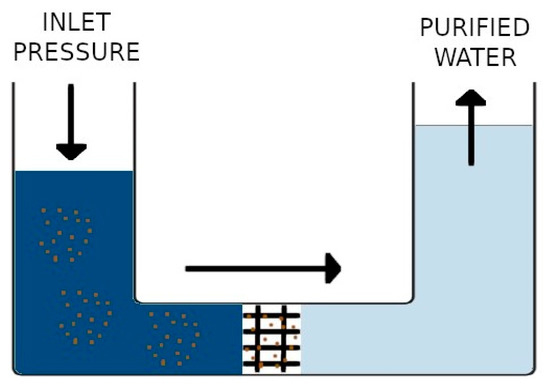 3]. Reverse osmosis, which is also known as hyperfiltration, is a process by which solvent molecules are forced from the more concentrated solution into the less concentrated one when a pressure greater than the osmotic pressure is applied. Hence, the reverse osmosis system uses cross-filtration, more commonly called tangential filtration. The greater the concentration, the greater the pressure required. Moreover, the turbulence derived from the induced pressure is strong enough to allow the membrane surface to remain clean. Therefore, another fundamental characteristic of the reverse osmosis process is that it does not alter the characteristics of the product, thus not compromising the subsequent characteristics of the processes that will be implemented in the product. The aim of this process is to obtain a pure solvent by preventing the passage of the solute from one side to the other with a membrane.