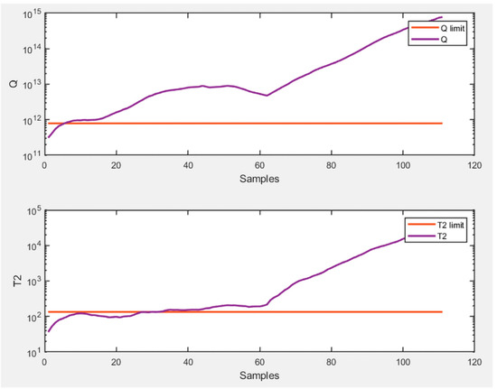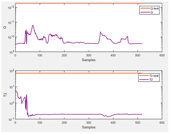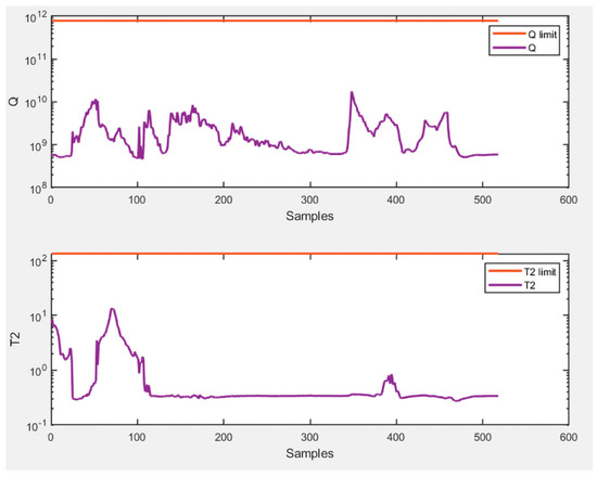 The procedures presented hereafter were performed to confirm the need to apply the above-mentioned methodology. Firstly, an optimization of the application of fault detection with KPCA to the same dataset was performed without using the past and future matrices but using the original dataset with pure monitoring data. The indices used for monitoring were