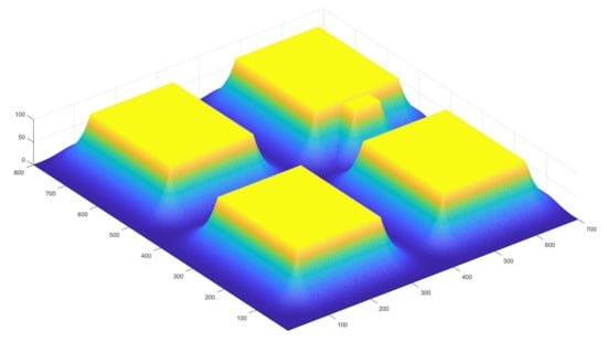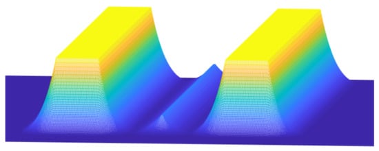 As is common in the literature, the potential of the road prevents the vehicle from leaving the boundary and keeping its current lane on the road. When the vehicle drives out of the boundary, the value of the potential should become infinite. In the meantime, the potential will also give a relatively weak potential to the vehicle when it drives on a certain lane (as in Figure 9). Thus, a repulsive force is employed according to Equation (5):