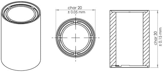For our study, we selected two types of serial product, i.e., a Magnet and a PKR. For each of the products, we implemented the measurement characteristics currently measured as part of the SPC measurements. In the case of the Magnet object, two characteristics were measured: (i) the characteristic diameter with code 20 and (ii) the characteristic height with code 30, with tolerances, respectively, and (Figure 3), and, in the case of the PKR object, four characteristics were measured: (i) the characteristic height with code 10, (ii) the characteristic height with code 100, (iii) the characteristic diameter with code 130, and (iv) the characteristic height with code 140, with tolerances, respectively, , , , and (Figure 4). In total, this was four heights and two diameters.