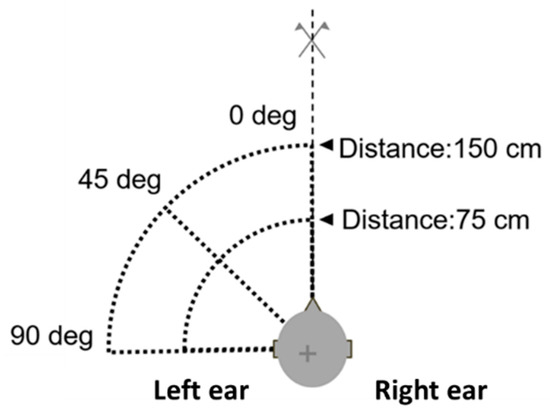 The acoustic load consists of a monopole source positioned at different locations around the seat at head height. Figure 5 shows the different monopole source positions considered during the tests. Three different angles and two different distances from the binaural head were considered for each of the four headrest setups, thus, a total of 24 experiments were carried out. The final test matrix is reported in Table 1.