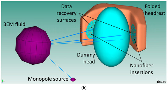 - Giannella, V.; Branda, F.; Passaro, J.; Petrone, G.; Barbarino, M.; Citarella, R. Acoustic Improvements of Aircraft Headrests Based on Electrospun Mats Evaluated Through Boundary Element Method. Appl. Sci. 2020, 10, 5712. [Google Scholar] [CrossRef]