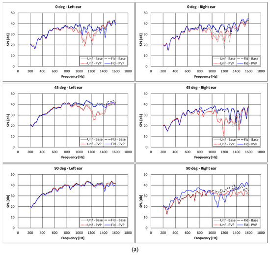 All of the “unfolded” headrest configurations outperform the “folded” ones throughout the considered frequency range. Moreover, as also confirmed experimentally (Figure 11), significant attenuations were achieved in the range of 600–1400 Hz by the adoption of the PVP nanofiber insertions.