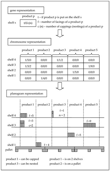 Retailers use a planogram to plan product allocation on shelves, which is a diagram or model that indicates the placement of offered products on shelves [6,7,8,9]. Of course, maximization of sales is dependent not only on efficient category planning but also on marketing and merchandising of products. Parameters such as unusual product shapes, colors, promotional additions, etc., may disturb the perception of shelves and product allocation. Still, the retailer’s regular work lies in consecutive decisions regarding the following problems: to determine the assortment size, allocate the assortment product items to the shelves, specify prices and discounts, and manage in-store shelf replenishment. Retail shelf management involves quickly and cost-effectively matching retail operations with customer demand [10].