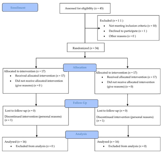 - Schulz, K.F.; Altman, D.G.; Moher, D. CONSORT 2010 Statement: Updated guidelines for reporting parallel group randomised trials. BMJ 2010, 340, 18–27. [Google Scholar] [CrossRef]