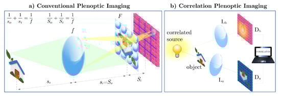 - D’Angelo, M.; Pepe, F.V.; Garuccio, A.; Scarcelli, G. Correlation Plenoptic Imaging. Phys. Rev. Lett. 2016, 116, 223602. [Google Scholar] [CrossRef] [PubMed] [Green Version]