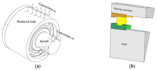 The bearing, from the point of heat transfer with the environment, is a specific assembly because some of its components are stationary (e.g., the body of the seat of bearing) and the other part is movable (the shaft on which the bearing rests). This is important from the point of view of the convection mechanism (Figure 3a).