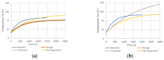 On the other hand, Figure 9 presents a collective comparison of the results of simulation studies of the influence of the contact model on temperatures.