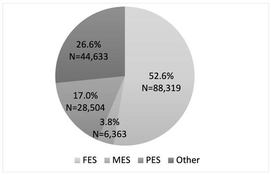 The relationship between family financial status and student enrollment strategy in each group is compared in Figure 3. Based on the figure, students employing a part-time enrollment strategy reported lower family incomes compared to student using MES or FES. The Kruskal–Wallis H test was applied to assess if there is a statistically significant difference in family income distribution for students with different enrollment strategies. The p-values associated with the hypothesis test results are zero the sample size for FES, MES, and PES is 59,400, 4170, and 16,371, respectively), indicating a significant difference in annual family income distribution between students with different enrollment strategies.