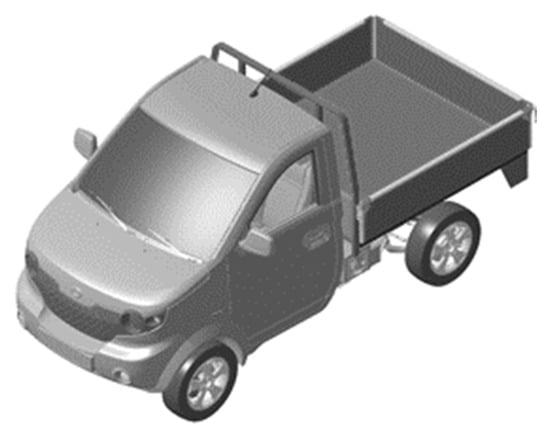 The target vehicle for application is a small truck with front-wheel drive. Figure 2 and Figure 3 and Table 1 show the modeling and detailed parameter values of the target vehicle for VMUG application.