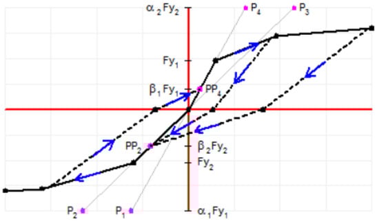 Multilinear plastic link with Pivot hysteretic model used for the nonlinear numerical analyses in SAP2000.