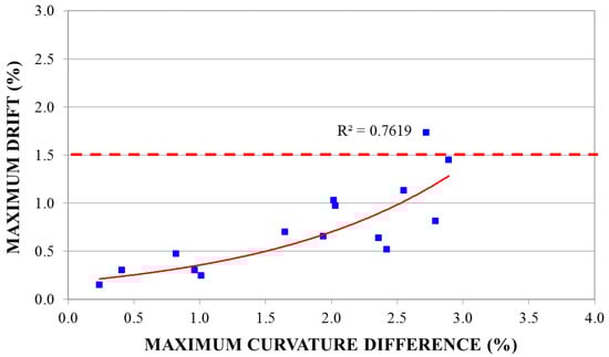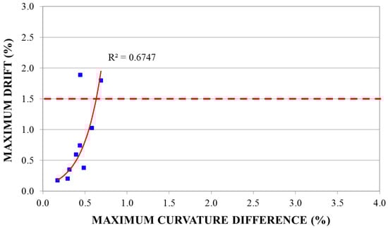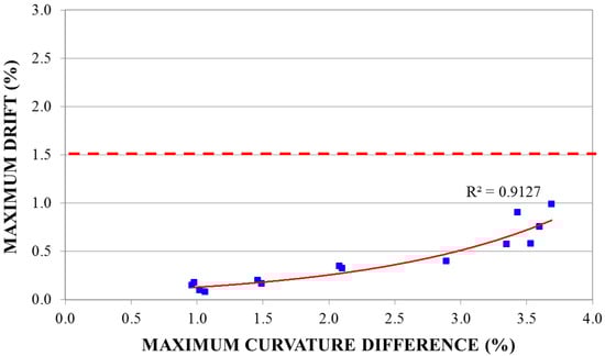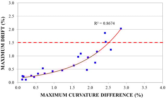 The above results show that the relationship between maximum inter-story drift and maximum curvature difference can be defined through the following correlation: