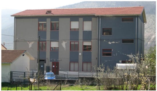 Picture of the monitored structure (Municipality of Navelli): damage of the infill panels. More details in [3].