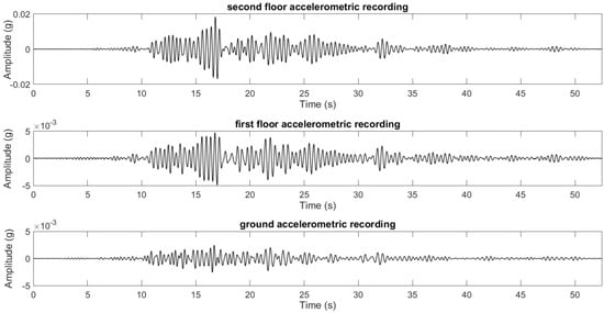 As described in [52], on 8 April 2009, four accelerometric stations were installed for the continuous monitoring of the building. The monitoring system was composed by one station installed in each floor (three) on the same vertical along the building height, and one station buried in the ground near the building. Stations were developed by Helmholtz-Centre Potsdam-German Research Centre for Geosciences (GFZ) and the Humboldt University of Berlin [53].