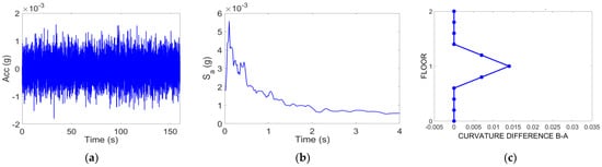 where is the difference in the curvatures between floors evaluated in the time instant A, and is the difference in the curvatures between floors evaluated in the time instant B. A is a general time instant immediately before the earthquake (during the stationary behavior of the monitored structure), while B is the time instant corresponding to the minimum fundamental frequency exhibited by an oscillating building during the strong motion phase.