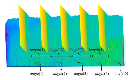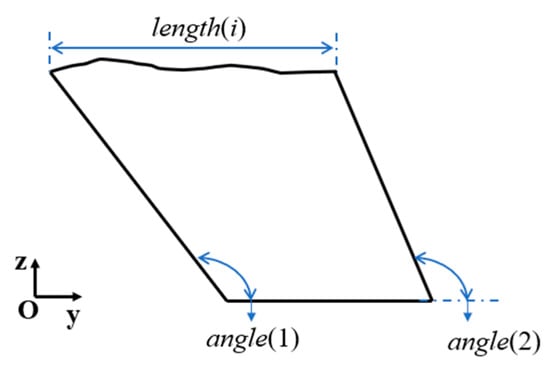 - Since the cuts must be continuously distributed throughout the fish body, the starting position of the initial solution must be determined, which is determined by the algorithm’s preprocessing strategy. After determining the starting position, use the real number vector to establish the initial solution, the size of which is 2n + 1, that is, X = [x1, x2, …, x2n + 1]. The first n elements are the length of each small piece, and the n + 1th to 2n+1th elements are the cutting angles of the front and back sides of each small piece, so X can also be expressed as [length(1)…length(n), angle(1)…angle(n+1)].