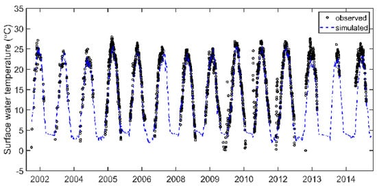 The simulated and observed surface water temperature comparison at Sta. 45005 (ECCC & NOAA) for 2002–2015.