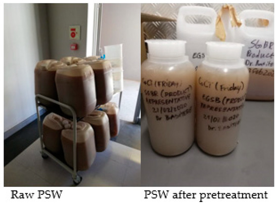 Photographs of the raw PSW in comparison to pre-treated PSW.
