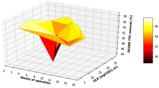 Performance of the DEGBR with respect to the TSS removal under varying OLRs.