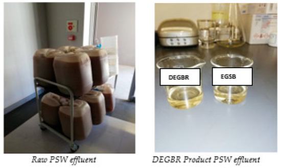 A comparison of raw PSW effluent and DEGBR product sample.