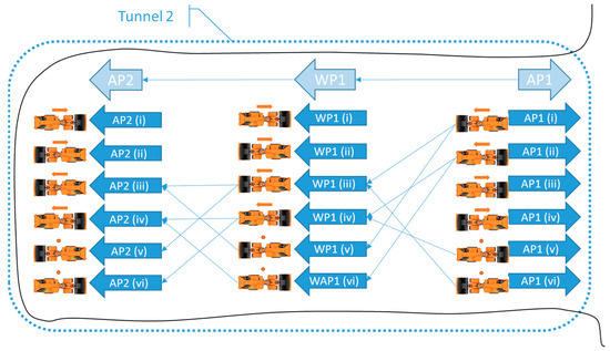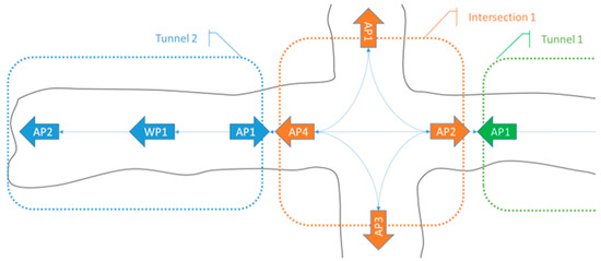 Between the first and second phases, several upgrades were made to the system in order to improve its robustness, consistency, and performance. The most important improvement was on the self-localization system, because the first batch of tests proved that the initial method (not described here) could not maintain the self-localization estimation along the test tunnel. Assisted tele-operation tests during the first phase were mainly used to tune the parameters of the Guidance module for the tunnel and intersection navigation modes (Equations (13), (14), (16), and (18)). Once the autonomous navigation was operating properly, further adjustments were made to all system’s parameters, including the parameters for the Command Executor module (Equations (20) and (21)). Parameters of the map were tuned, such as the maximum speed for certain segments of the tunnel, 2D poses of APs/WPs, and navigation modes for different parts of the tunnel.