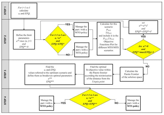 STEP 2. Multiscenario analysis. Considering different values of a* and EPQ* (as illustrated in Figure 7), the values of the two objective functions Equation (6) and Equation (8) are assessed.
