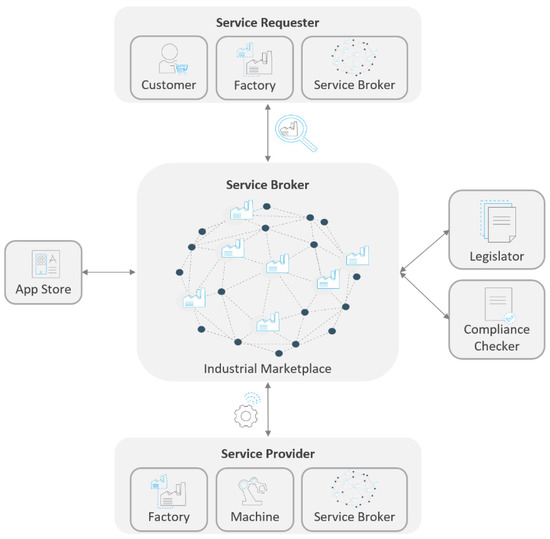 Figure 1 shows possible stakeholders of industrial marketplaces and their basic interactions. Industrial marketplaces typically act as service brokers that mediate a (production) service between service requesters and service providers. Service requesters use industrial marketplaces to request services from service providers via the marketplace. Service brokers can be in a federation of industrial marketplaces to extend functionalities.
