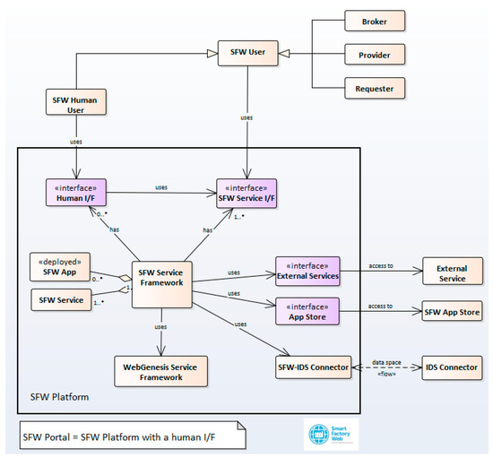 Usländer, T.; Schöppenthau, F.; Schnebel, B.; Heymann, S.; Stojanovic, L.; Watson, K.; Nam, S.; Morinaga, S. Smart Factory Web—A Blueprint Architecture for Open Marketplaces for Industrial Production. Appl. Sci. 2021, 11, 6585. https://doi.org/10.3390/app11146585