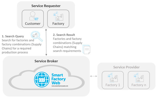 One of the adaptation measures refers to the possibility to bring more flexibility into the supply chains by applying the principles of the platform economy to industrial production systems. According to [1], the term platform economy simply “encompasses a growing number of digitally enabled activities in business, politics, and social interaction.” More concretely, ref. [2] states that “platform economy (also known as collaborative platform economy or sharing economy) is used as a floating signifier for interactions among distributed groups of people supported by digital platforms that enable them to exchange (matching supply and demand), share, and collaborate in the consumption and production of activities leveraging capital and goods.” For the application domain of industrial production, this includes marketplaces that offer “production as a service”, i.e., they allow the mediation of a customer request for delivery of a product with given criteria and characteristics with a supplier’s capability to produce such a product according to these criteria and characteristics.