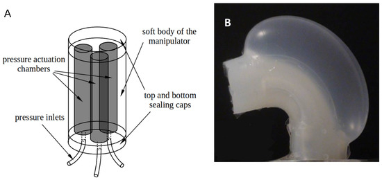 What makes a soft robot ‘soft’ is the selection of materials used in the production of its main body (Rigid-bodied robots are sometimes called “soft” when in fact they would be better described as “compliant”. Compliance can be achieved through various compensatory mechanisms using smart sensors and compensatory algorithms. For the purposes of this paper, however, “soft” means physically soft). Traditional robots are made of rigid materials, their stiff parts interacting with each other in a well-defined way, and within well-defined constraints, by way of mechanisms composed of rigid links and stiff joints. Most roboticists are well versed in determining the dynamics and kinematics of rigid robotic systems and are able to create rigid robots that are both precise and reliable. These are not however infallible, and accidents still happen, and the stiffness of these devices’ components is often a factor [20]. Soft robots offer certain advantages, in particular in relation to safety and physical adaptability or deformability—a characteristic that clearly reduces its impact, during any collision, upon an external object [21]. This natural compliance also helps to compensate for any minor control inadequacies on the part of the robot [22,23], see Figure 2.