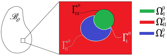 where and are the deformation gradients in the subphases and the matrix, respectively, and and are the strain energy functions in the subphases and matrix, respectively. We do not define a specific strain energy function at this stage and wait until Section 4.1 to specify it.