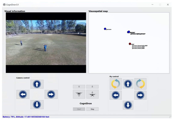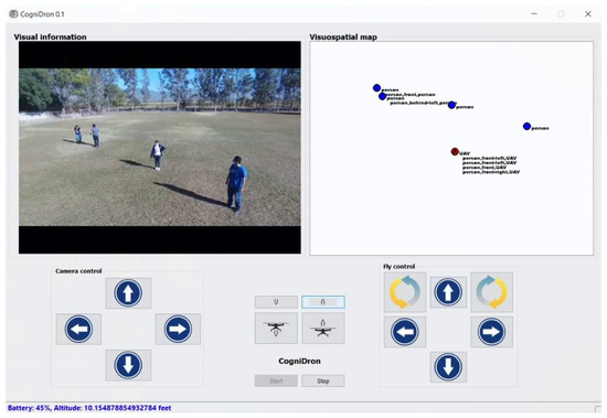 Unmanned Aerial Vehicles (UAVs), also known as drones, are becoming more and more popular in the research community because they have been widely studied in order to know their potential usage in different areas such as entertainment [1], marketing [2], healthcare [3], agriculture [4], and security [5]. The Artificial Intelligence (AI) research community has made a great effort to develop “intelligent” UAVs capable of doing tasks in an autonomous or semi-autonomous way [6]. Creating an “intelligent” UAV capable of navigating and interacting autonomously in the real world involves facing formidable challenges because they need to be able to process multiple tasks simultaneously, such as constantly sensing the environment; identifying and classifying both static and dynamic obstacles and targets; generating an internal representation of the real world, where the spatial relationship information between the environment’s objects must be constantly updated; reasoning and making right decisions to react appropriately when unexpected events appear. New interdisciplinary fields such as cognitive computing [7] and cognitive infocommunication [8] aim to create various bio-inspired engineering applications such as brain–computer interfaces [9] and computational systems capable of mimicking the intelligence of living beings (e.g., insects, rodents, primates, and humans) [10,11,12,13,14]. The computing research community focused on developing bio-inspired systems considers that nature offers a rich source of inspiration for developing “intelligent” systems. Undoubtedly, one of the most challenging bio-inspired systems is the system that tries to mimic human intelligence. This paper presents a bio-inspired computational model of Visuospatial Working Memory (VSWM) to endow autonomous UAVs with this cognitive function. The VSWM is a fundamental cognitive component of human beings for exploring the visual environment. The VSWM is a memory buffer that allows observers to retain visuospatial information for a short period of time when visual stimuli are no longer in view as a consequence of object occlusion and saccadic eye movements [15]. The VSWM is formed by two types of Working Memory (WM): Visual Working Memory (VWM) and Spatial Working Memory (SWM) [16]. Whereas the VWM is a short-term memory involved in the active representation of the visual appearance of relevant objects [15,16], the SWM is a short-term memory involved in the active representation of the locations of relevant objects [16,17]. Therefore, the VSWM integrates sensory information coming from both the VWM and the SWM to generate visuospatial maps, also known as visuospatial mental imagery [16,18,19]. These maps offer a coherent and continuous representation of visual and spatial relationships among objects present in the external world, which are then further processed for the generation of specific actions such as spatial shifting, visual search, and target selection.