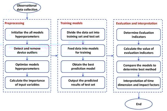 The basic stats of the original data and the data processed using the DBSCAN method are listed in Table 2. The average values of the processed data were similar to the average values of the original data, but the standard deviation was reduced. This result showed that the DBSCAN method can effectively filter device caused outliers and help suppress any interference by such data on the prediction.