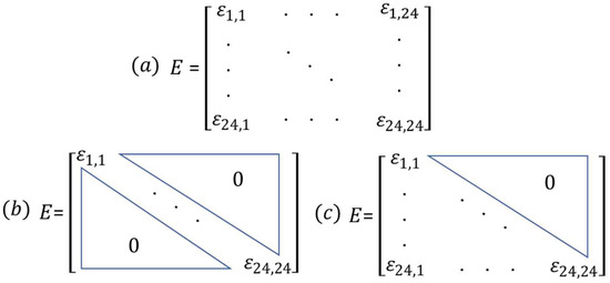 and represent the self and cross-price elasticities of demand, respectively, where they capture the effect of electricity price change for customers on their electricity consumption. This relationship lies at the heart of DR systems to determine the price set by utilities to achieve economic benefits in the power market and technical benefits related to the operation of the power system [19]. To capture the price elasticity of demand on 24 h under the assumption that the rescheduling of the production does not go beyond a 24-h interval, the PEDM is formulated as [19,20]: