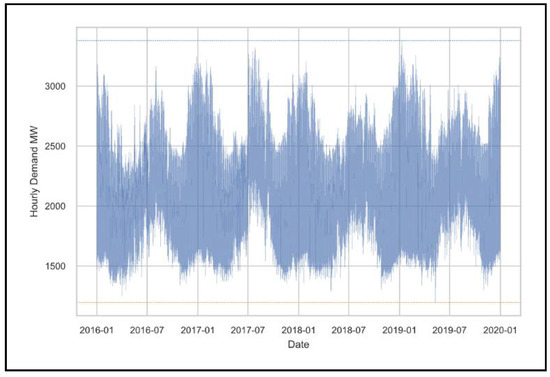 - A well-defined and optimized deep learning model for accurate day-ahead hourly short-term load forecasting (STLF) is trained on four-years of Jordan’s hourly electrical demand from 2016 to 2019. The model’s architecture and input features follow state-of-the-art feature engineering based on recent research discussed in detail. Up to date, there are very few Jordanian case studies that examined daily hourly STLF rather than day-ahead hourly STLF, such as [39], where they used only one year of electrical demand data. This research proposes a new set of time series features that are novel to previous works on Jordan’s electrical demand forecasting.