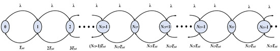 The most important parameters for any queue are: the average time spent in the queue, average queue length, and the overall average time spent in the system [47]. To obtain these parameters, a Markov chain is used in the queueing analysis [48].