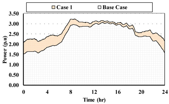In the developed DSM, each EV owner feeds the system with two control signals, the , and the price reference . To model the owner preferences in this work, a normal distribution for both signals is generated. It is assumed that the mean EPDT is 6.00 h with 1.00 h stander deviation, on the other hand, the OPR has a mean equal to 0.45 per unit price and 0.05 stander devotion. The obtained distribution results for both signals are exhibited in Figure 11. Based on the owner signals and the real-time ETR (see Figure 4) [16] which is provided by the DSM, the developed DSM based on the queuing theory gives the priority for the EV to charge or to be in the idle state. Figure 12 shows the demand for this case and it can be noted that an amount of demand has been shifted to the time where the ETR is low to avoid the high charging cost.