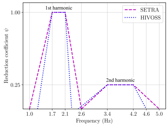 Conventionally, interaction phenomenon between a walker and a structure has been considered by employing a moving MSD system plus an external harmonic force [22,27,42]. In this HSI model, the MSD system is described by the dynamic properties of the human body, and the periodic force is defined similarly to the actuator force (Equation (11)). However, different coefficients, which from now on will be called vertical dynamic load factors (VDLFs), are used to define the force that only acts on the structure. Knowing the values of GLFs for the different harmonics and the TF of the human body, (Equation (10)), VDLFs coefficients can be computed from the following expression