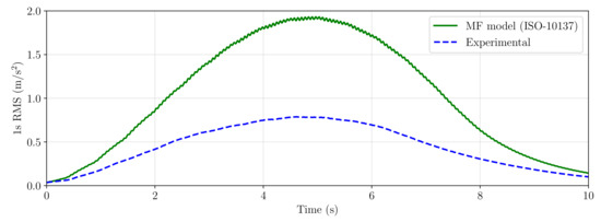 Comparison of 1s RMS acceleration employing the identified HSI model.