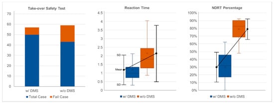 - The safety of the transition process is improved if the DMS causes the driver to check the driving scenario periodically (in Section 3.4, improvement of reaction time and takeover failure with DMS).