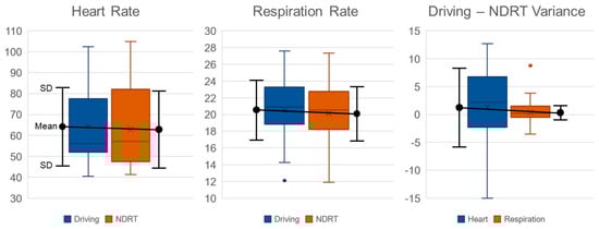 - Hidalgo-Muñoz, A.R.; Béquet, A.J.; Astier-Juvenon, M.; Pépin, G.; Fort, A.; Jallais, C.; Tattegrain, H.; Gabaude, C. Respiration and heart rate modulation due to competing cognitive tasks while driving. Front. Hum. Neurosci. 2019, 12, 525. [Google Scholar] [CrossRef]