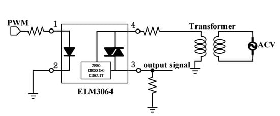 According to the opt-electrical characteristic of the adopted CLCs display, a high-voltage modulation circuit with an amplitude of 250 V is required. The schematic diagram of the high voltage RMS amplitude modulation circuit is shown in Figure 4. In the implemented high voltage modulation circuit, a high-voltage AC boosted by a transformer is connected to the photo-coupler ELM3064 through a 400 Ω high power resistor. The high-voltage AC can be conducted or cut off with the ON or OFF duration of the PWM driving signal.
